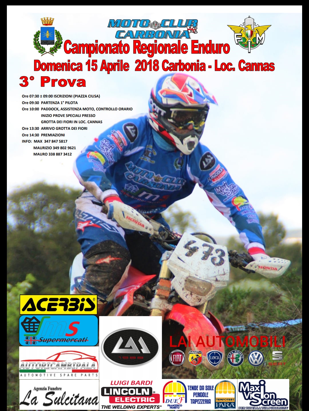 Anche quest’anno il Motoclub Carbonia organizza una manifestazione motociclistica denominata 3° prova di Campionato Sardo di Enduro…con partenza da Piazza Ciusa dalle ore 8,00 e paddock ed assistenza nel piazzale della Grotta dei Fiori loc. Cannas… Una bella manifestazione che vedrà impegnati i migliori piloti provenienti da tutta la Sardegna…Per gli appassionati di moto e i simpatizzanti sarà una occasione da non perdere…