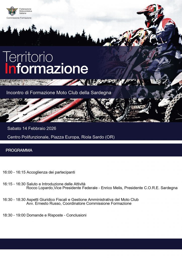 Al seminario sono invitati a partecipare tutti i Presidenti e i Segretari dei Moto Club della Sardegna, naturalmente i Moto Club che lo riterranno opportuno potranno far partecipare anche altri soggetti che nell’ambito delle attività dei Moto Club sono impegnati e devono essere a conoscenza degli argomenti trattati e indicati nel questionario che vi è stato inviato.